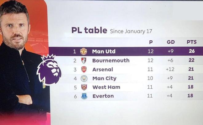 然而,卡里克仍然需要找到进一步改变曼联的方法。他的红魔与排名英超前六的球队交锋,赢了其中四队,还有机会在下月初同时击败利物浦,完成「通杀」。然而,曼联与排名前六的球队交锋获得的18分,在对阵排名后六位的弱旅时基本都丢掉了,他们面对榜尾球队失去多达17分。